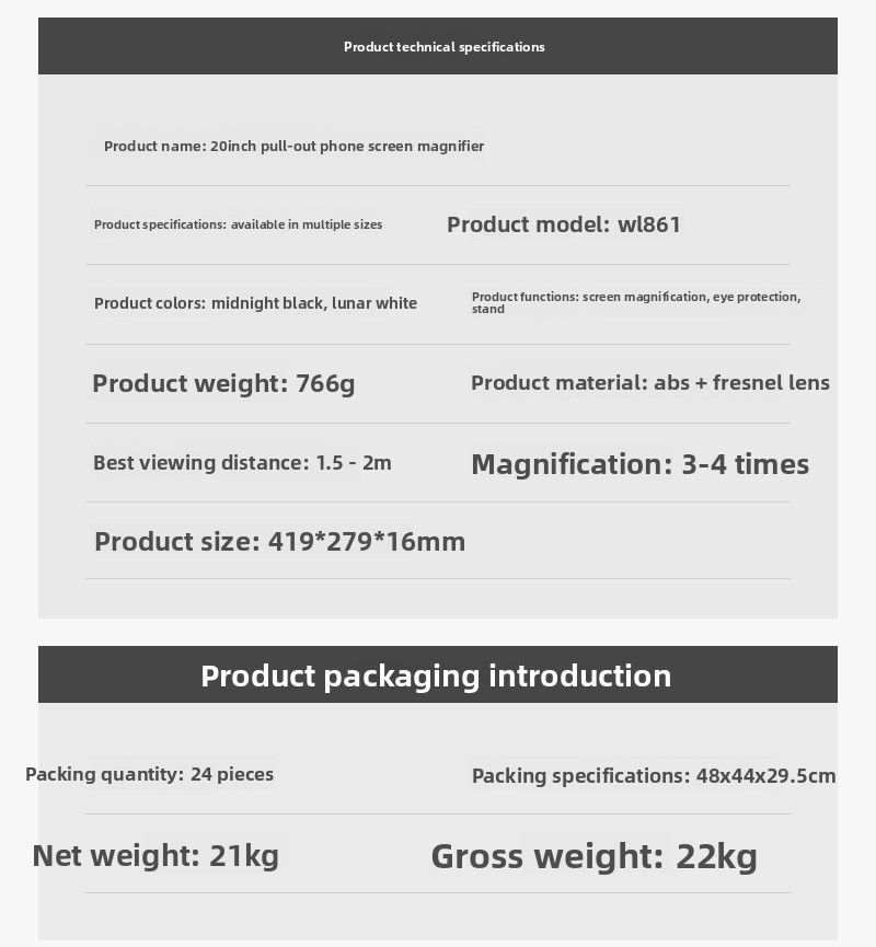 Amplificateur écran WL861 HD pour téléphone portable 10-20 pouces